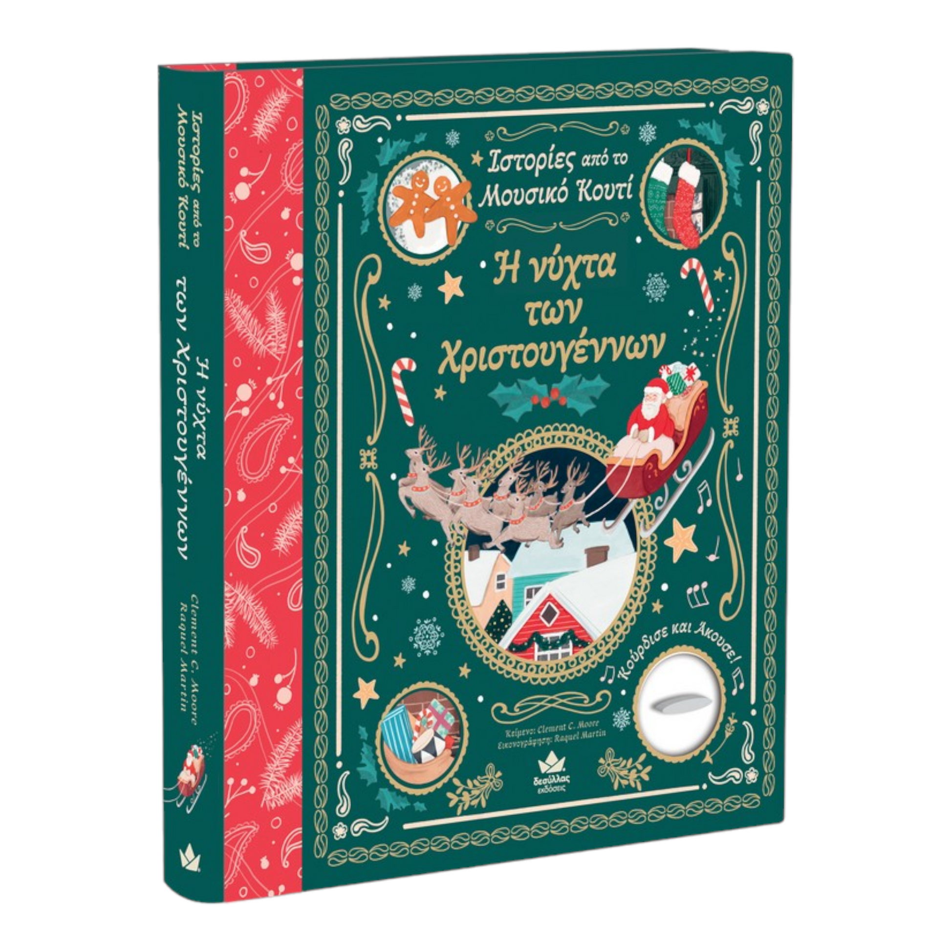 Η μαγεία της μουσικής γίνεται δική σου χάρη σ’ αυτό το διαδραστικό βιβλίο και τις κουρδιστές μελωδίες του, που είναι σαν τα παλιά αγαπημένα μουσικά κουτιά. Κούρδισε και άκουσε το «Γιορτινά τραγούδια ηχούνε» (Deck the Halls), απολαμβάνοντας αυτήν την κλασική ιστορία." (από το οπισθόφυλλο του βιβλίου)