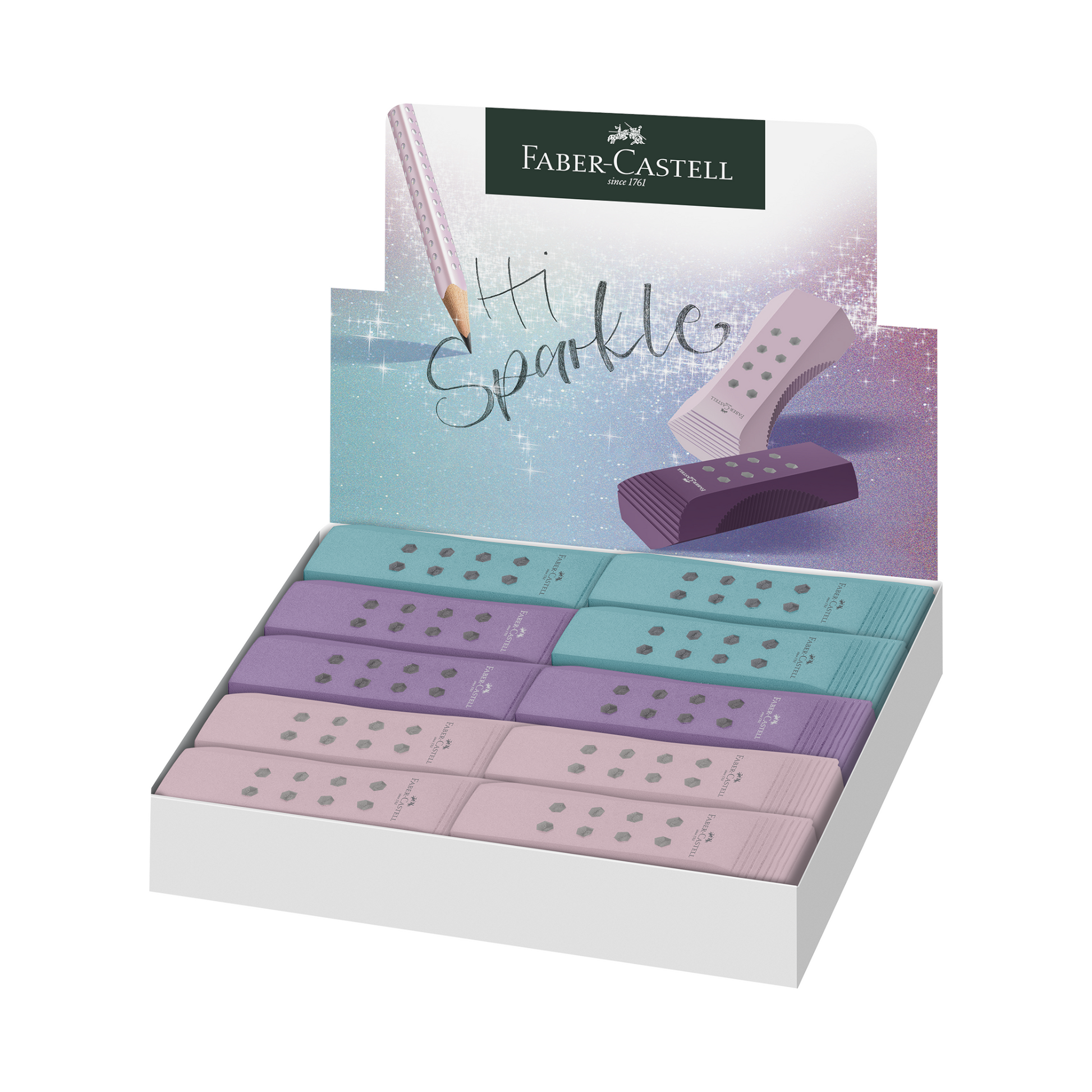 Σε 3 αποχρώσεις, ροζέ shadow, μοβ και τυρκουάζ, που ταιριάζουν άψογα με τα νέα χρώματα των μολυβιών Sparkle.