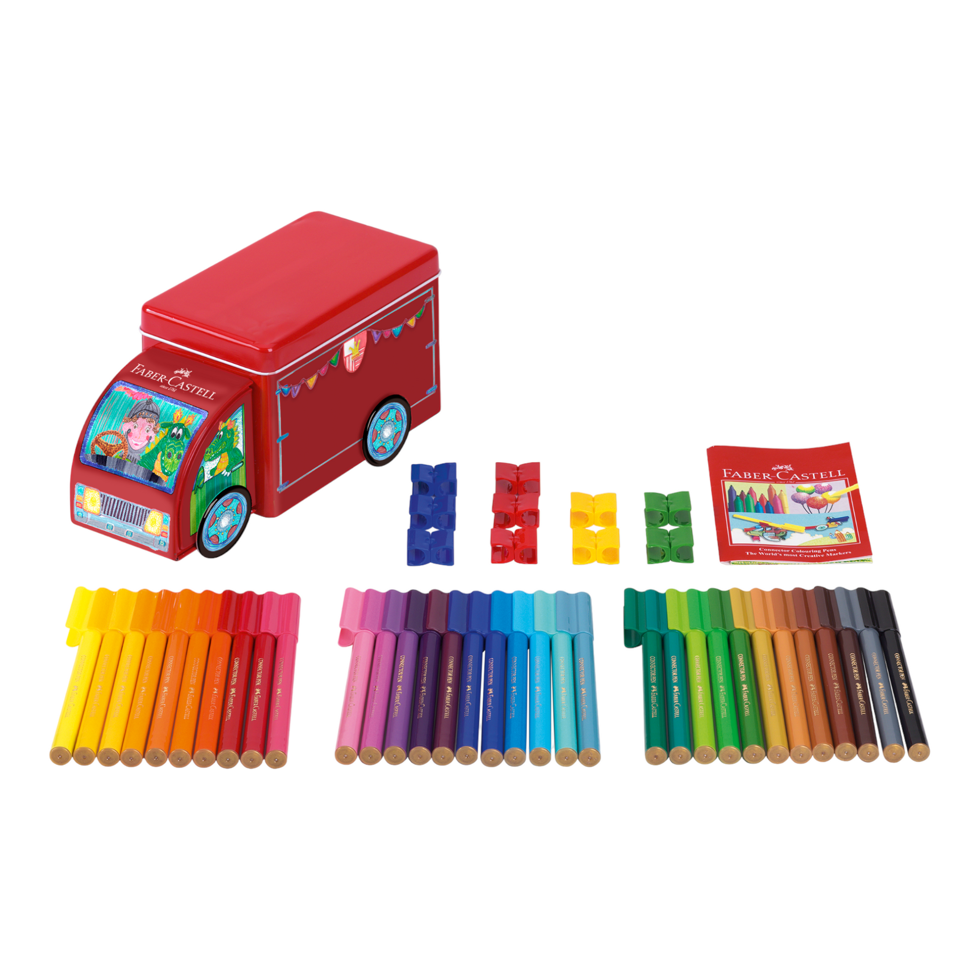 Μαρκαδόροι Ζωγραφικής Faber-Castell Connector Φορτηγό σε μεταλλική κασετίνα (33 Χρώματα)