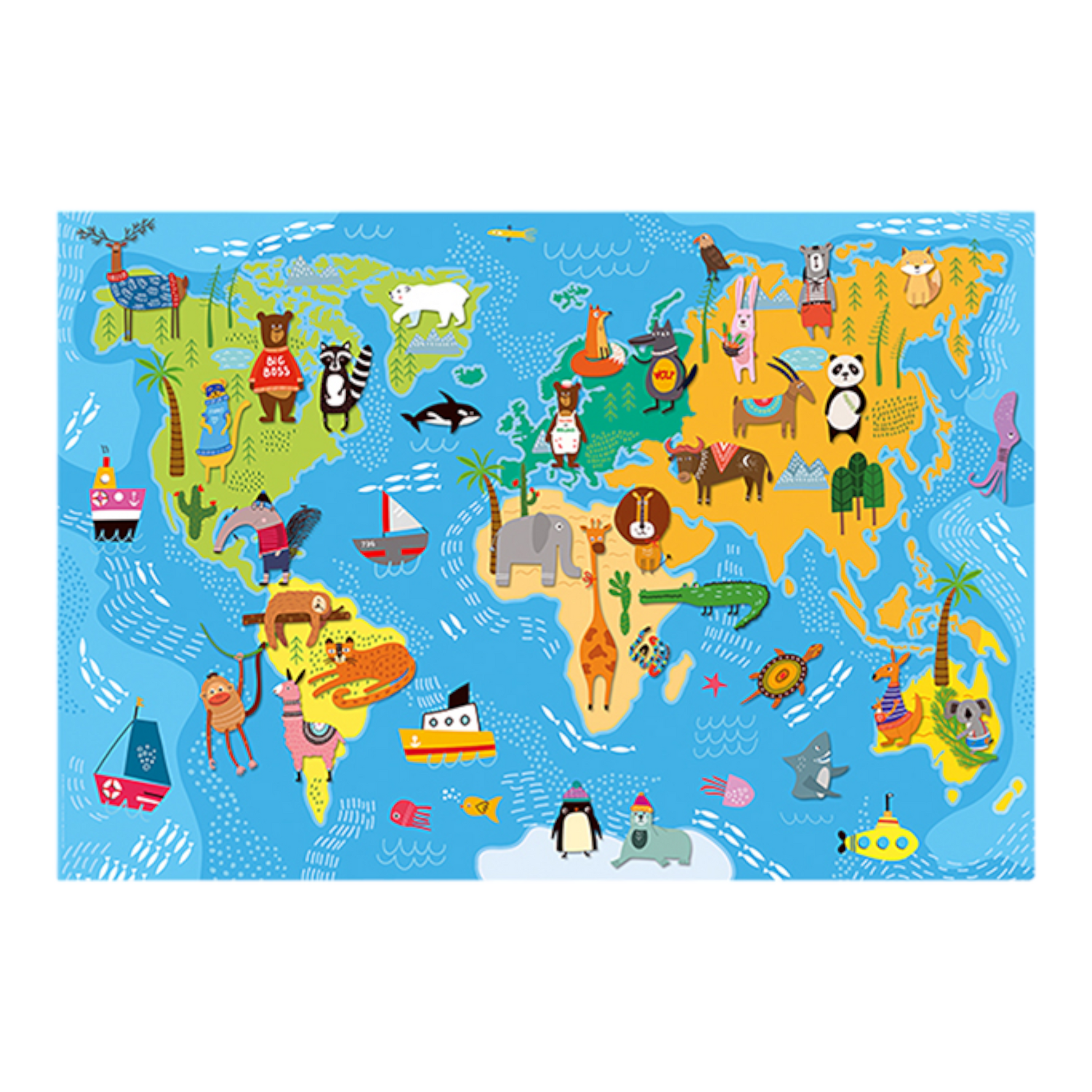 Εξαιρετικής ποιότητας παζλ δαπέδου, το οποίο αποτελείται από 48 μεγάλα κομμάτια. Συνθέστε το γιγαντιαίο αυτό παζλ και ταξιδέψτε στον υπέροχο κόσμο των ζώων, μαθαίνοντας πού ζει το καθένα!