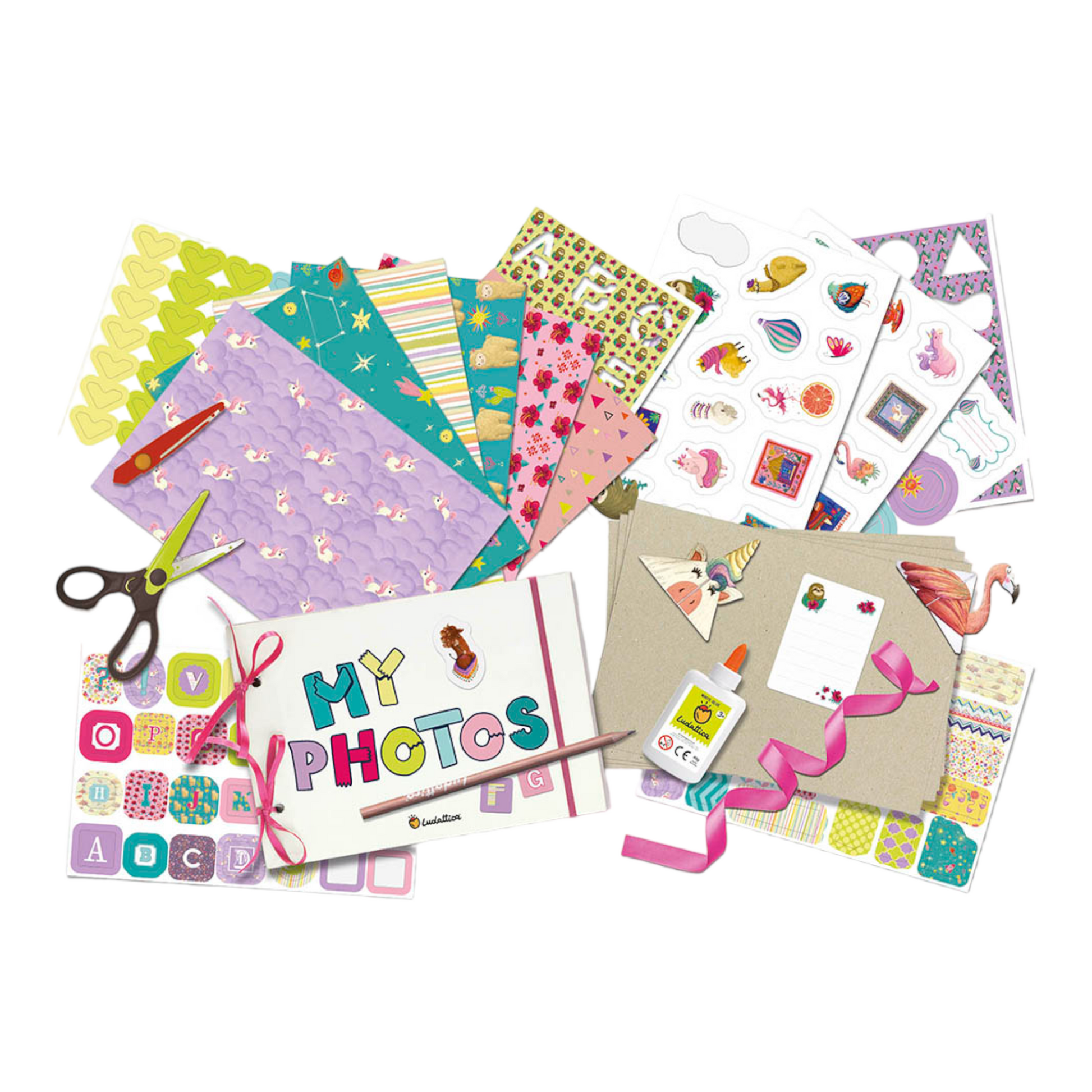 Με αυτό το υπέροχο σετ, το παιδί σας θα φτιάξει και θα διακοσμήσει το δικό του λεύκωμα! Το σετ περιλαμβάνει 12 φύλλα από χαρτόνι, ψαλίδι με επιπρόσθετη ειδική λεπίδα ζιγκ-ζαγκ, φιόγκους, αυτοκόλλητα, μολύβι, στένσιλ, καθώς και βιβλίο οδηγιών.