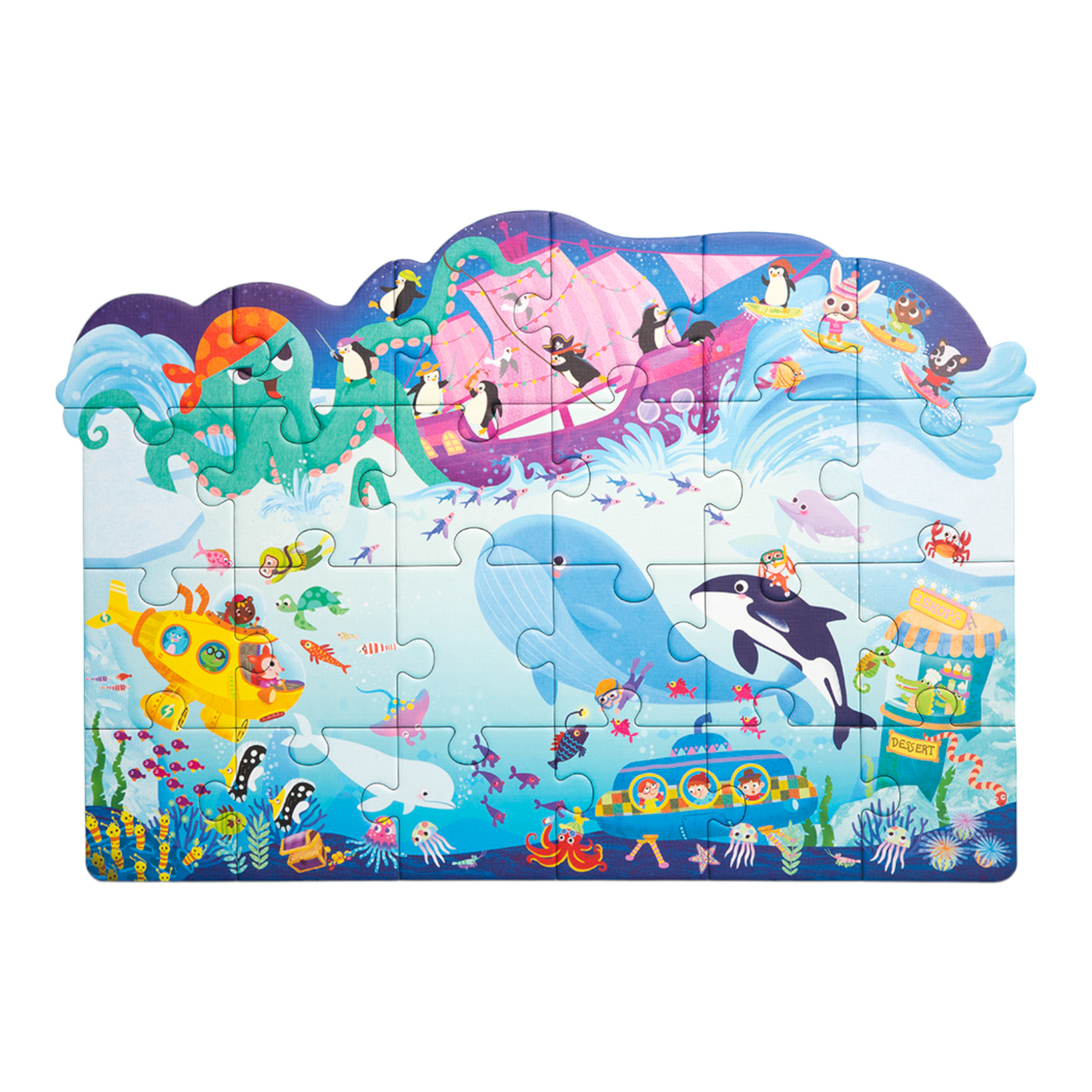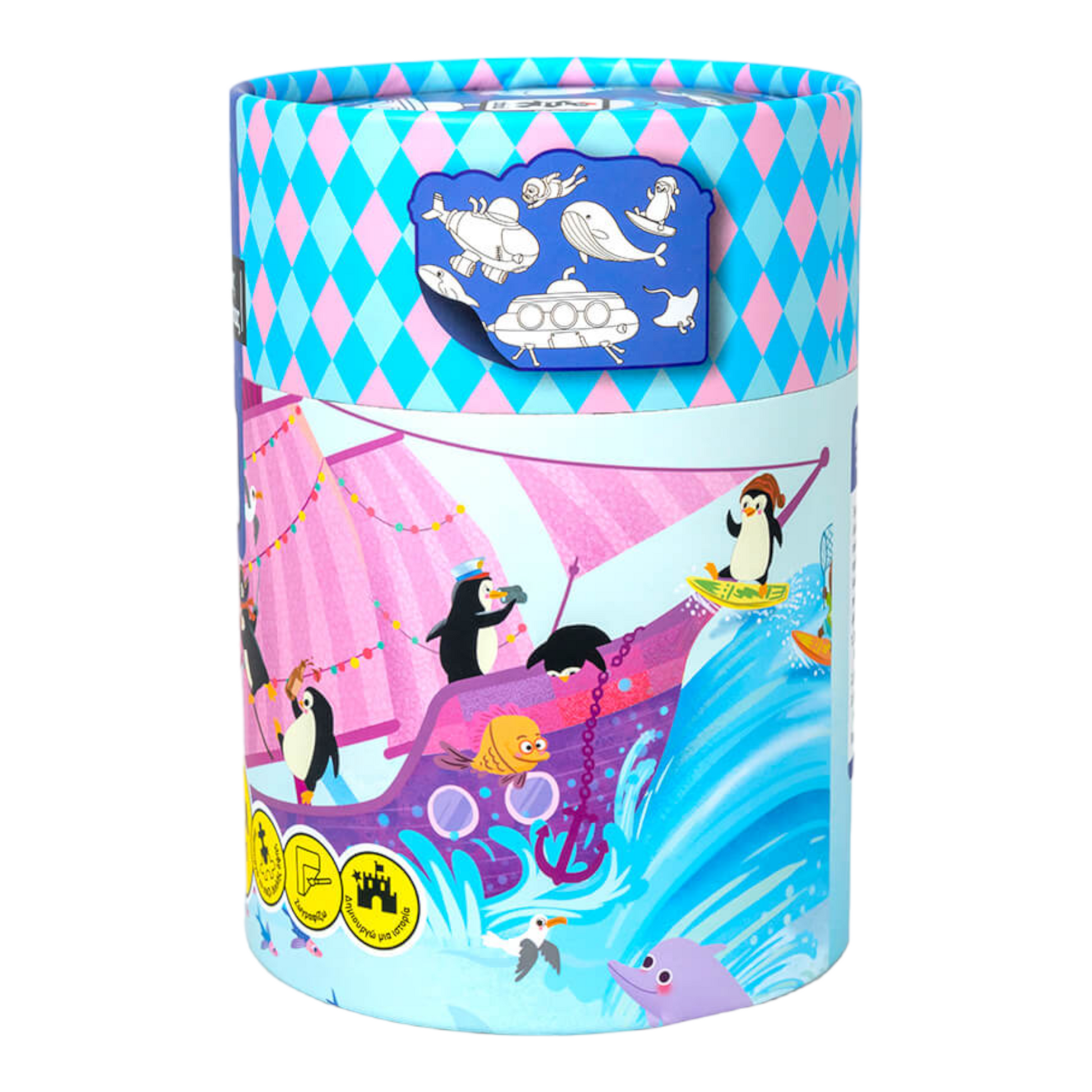 Τα μικρά παιδιά, αφού ενώσουν τα κομμάτια και δημιουργήσουν την εικόνα, μπορούν να χρωματίσουν την πίσω όψη του παζλ, καλλιεργώντας με τον τρόπο αυτό τη δημιουργικότητα και τις καλλιτεχνικές τους δεξιότητες. Η διασκέδαση, όμως, δε σταματά εκεί! Χρησιμοποίησε τη φαντασία σου και, με τις εικόνες που βλέπεις, δημιούργησε τη δική σου ευφάνταστη ιστορία με ήρωες τους πιγκουίνους, το μεγάλο πράσινο χταπόδι και τα υπόλοιπα πλάσματα της θάλασσας!
