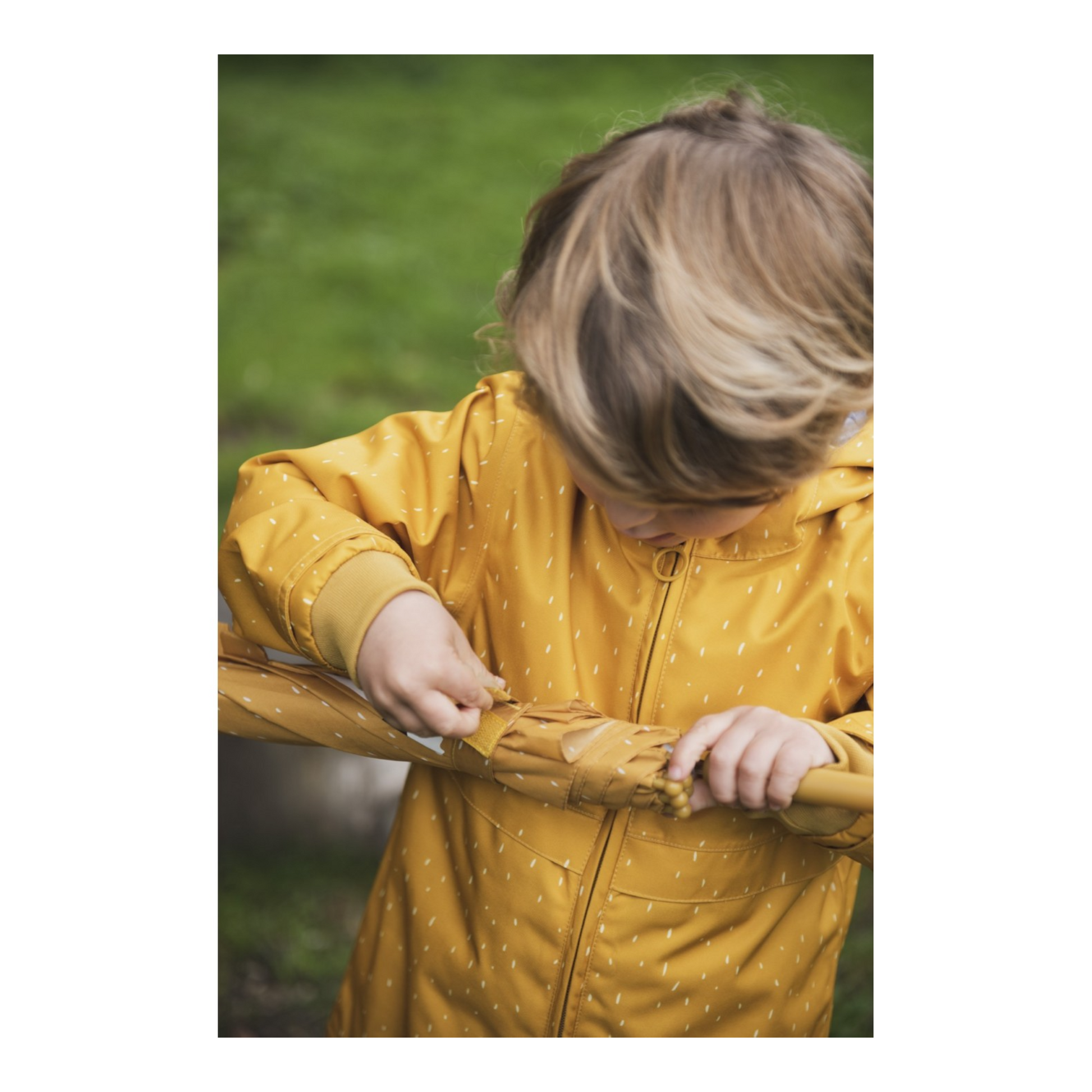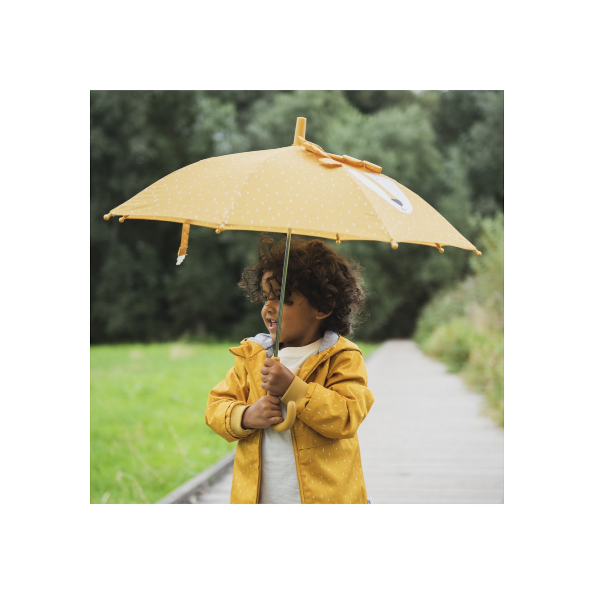 Το περπάτημα στη βροχή δεν ήταν ποτέ πιο διασκεδαστικό! Οι ομπρέλες της Trixie από 100% ανακυκλωμένο πολυεστέρα φωτίζει τις γκρίζες και βροχερές μέρες των παιδιών σας με τα χαμογελαστά πρόσωπα από τα αγαπημένα μας ζωάκια. Το ασφαλές, συρόμενο σύστημα για το άνοιγμα και το κλείσιμο της ομπρέλας είναι ειδικά σχεδιασμένο για τα μικρά τους χεράκια. Το πλαίσιό της είναι κατασκευασμένο από ισχυρό, υψηλής ποιότητας και ελαφρύ αλουμίνιο. Ο μικρός ιμάντας με την ουρά του ζώου σας επιτρέπει να αποθηκεύσετε τακτοποιημένα την ομπρέλα, όσο ο ήλιος λάμπει!
